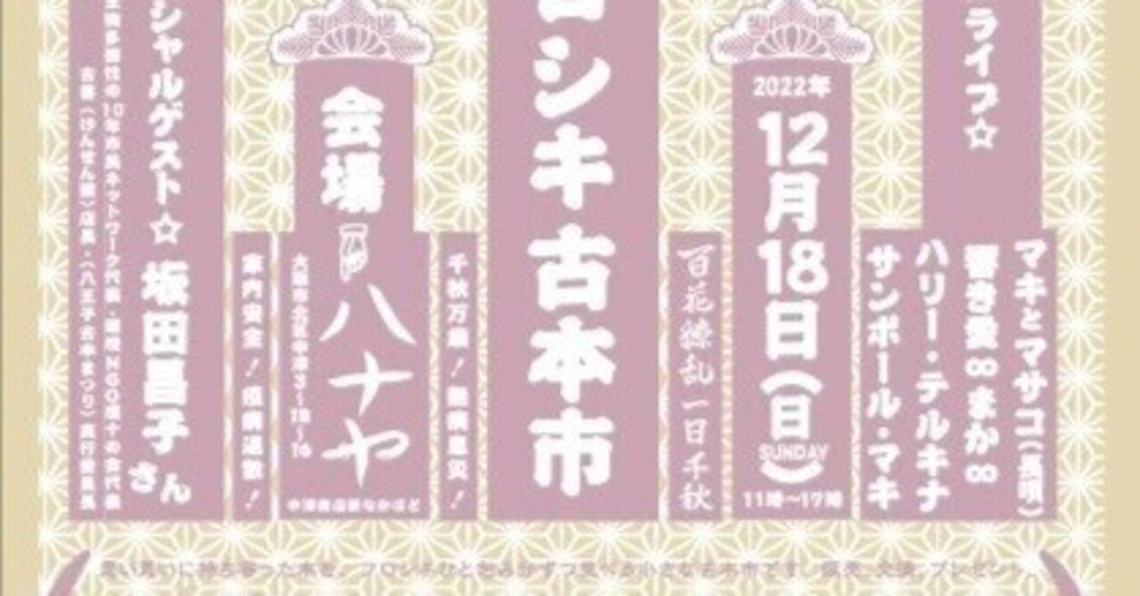 今回もスペシャルゲストに坂田昌子さんを迎え「本が育む食文化」がテーマの座談会、ミニライブ、いろんな出店も盛りだくさんの楽しい市にぜひご参加ください。